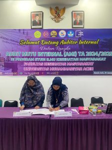 Kegiatan kemudian dilanjutkan dengan arahan teknis pelaksanaan AMI oleh Ketua Auditor, Fani Sartika, S.E., M.M. Dalam arahannya, Ketua Auditor menekankan pentingnya konsistensi antara dokumen, pelaksanaan di lapangan, dan bukti pendukung yang ditampilkan sebagai dasar penilaian keterlaksanaan standar mutu. Pelaksanaan visitasi di Fakultas Kesehatan Masyarakat menjadi nilai tambah karena dihadiri secara langsung oleh dosen dan tenaga kependidikan, sehingga proses klarifikasi dan pendalaman bukti dapat berjalan lebih efektif dan komprehensif. Selanjutnya, tim auditor melaksanakan visitasi lapangan melalui verifikasi dokumen dan klarifikasi kepada unit-unit yang diaudit.